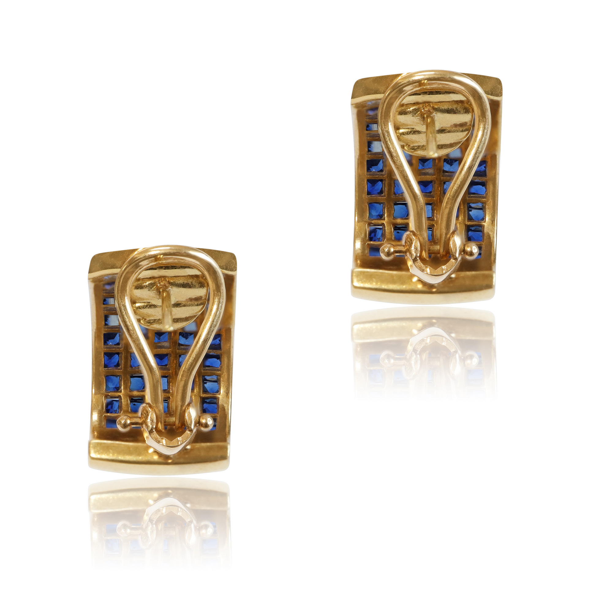 Vintage Invisibly-Set French Cut Sapphire 18k Gold Earrings